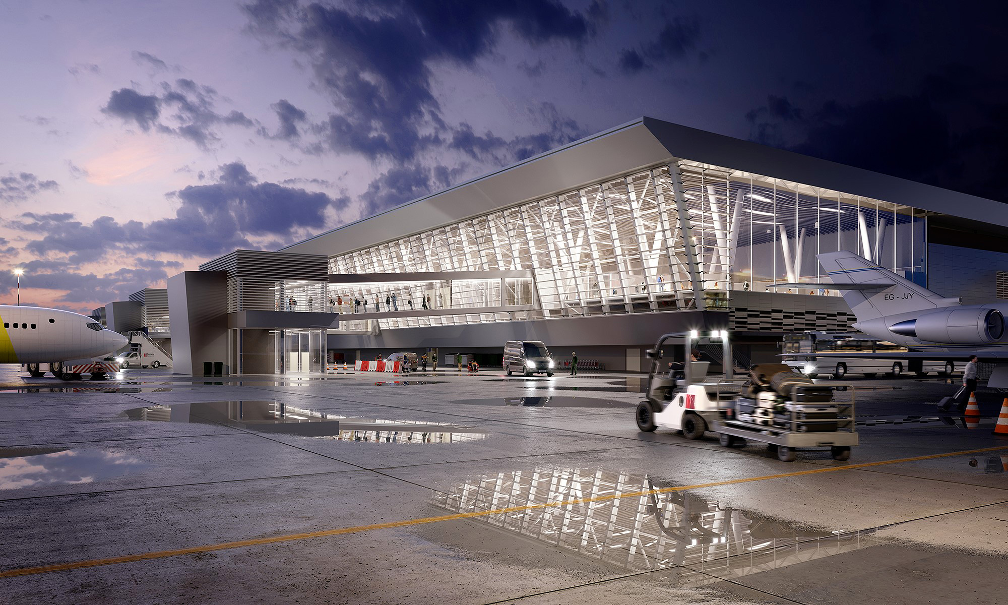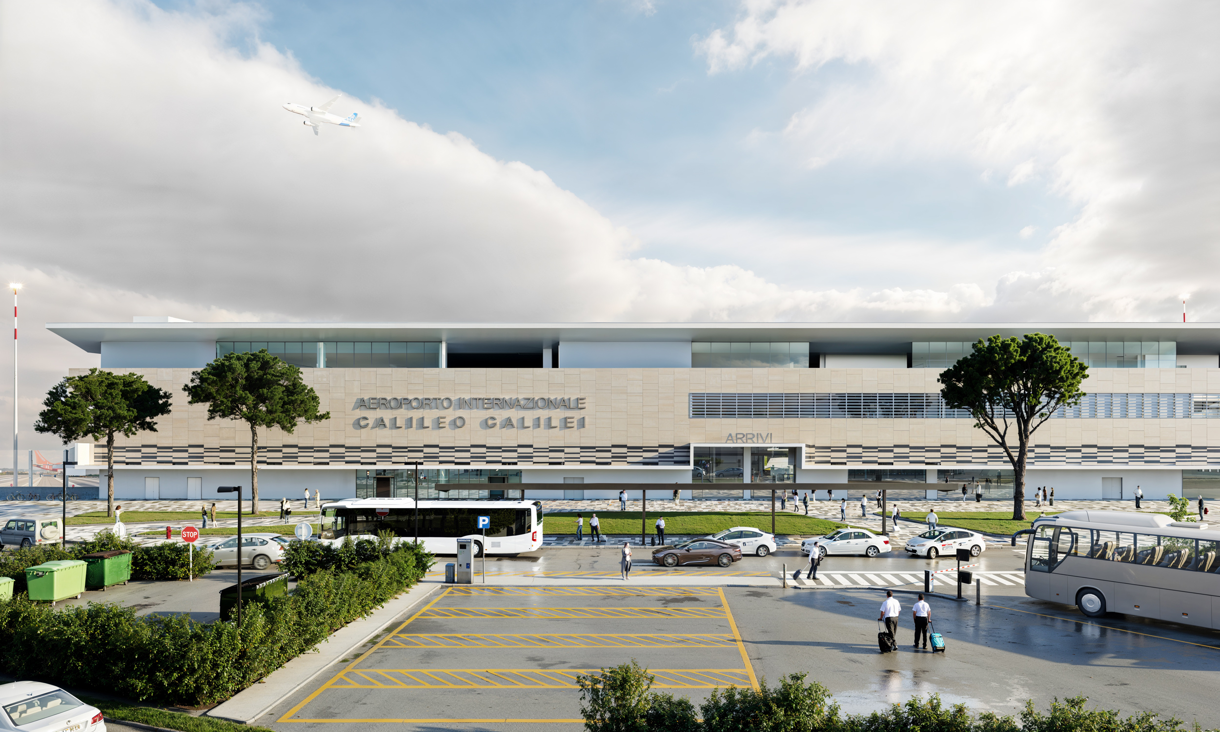 Render di progetto per l’ampliamento dell’aeroporto di Pisa, Italia.